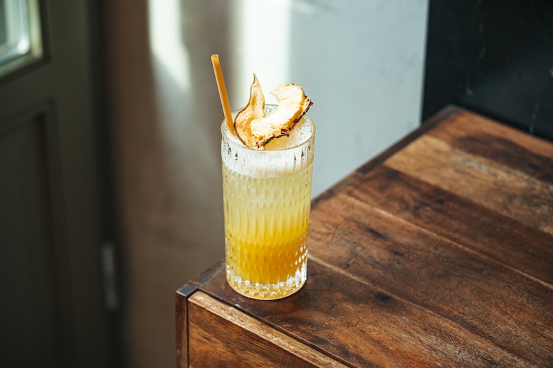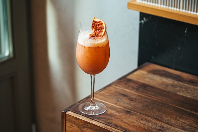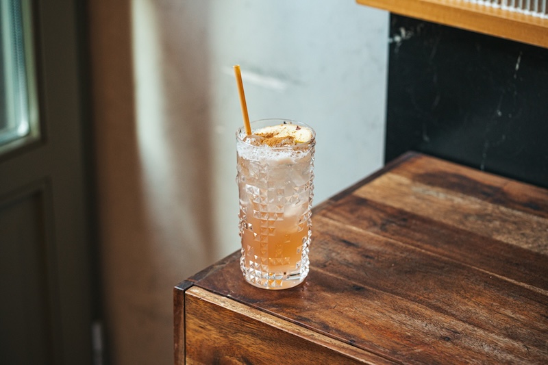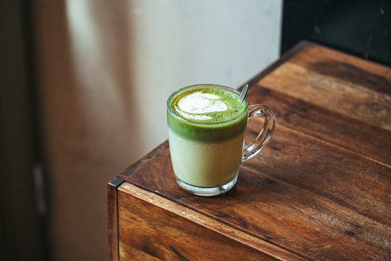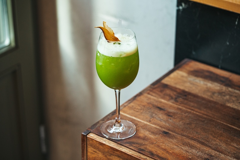 Mit Matcha infundierter Wodka, Hafermilch, Kakaolikör & Vanillesirup