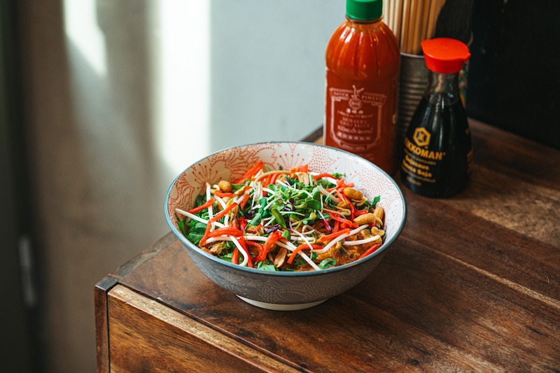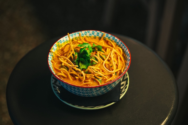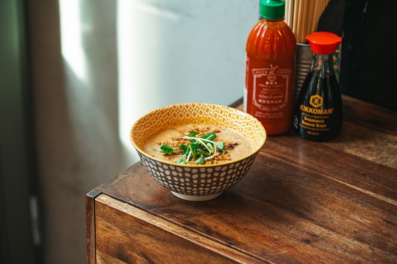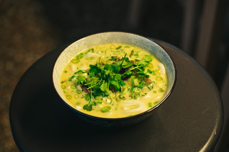 Mit Zitronengras & Ingwer infundierte Kokosmilch, Nudeln & Gemüse