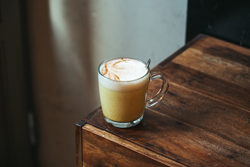Hafermilch, Kurkuma, Ingwer, Zimt, Honig & Orangensirup